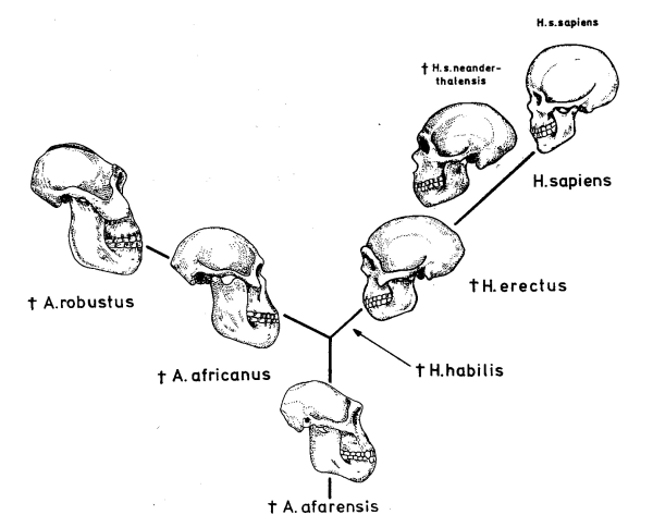 6) Hvor mange arter er det i stamtreet nedenfor som viser menneskets evolusjon?