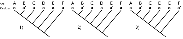 som er mulige synapomorfier. Problemer dukker opp når man ikke vet hvilken av de alternative karaktertilstandene (f.eks. "til stede" "mangler")